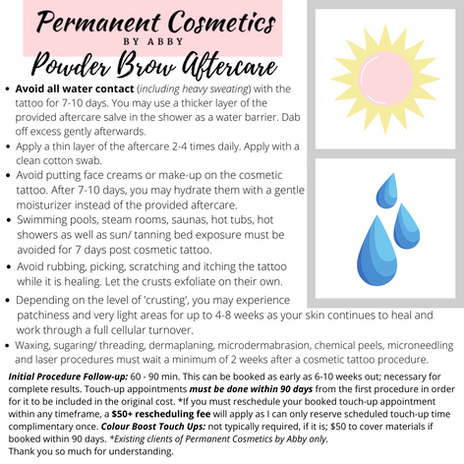 **Your powder brows MUST be at least 30-50% faded before booking a colour boost in order for the procedure to be worthwhile for you; I must turn away if they are not yet faded enough to do so**